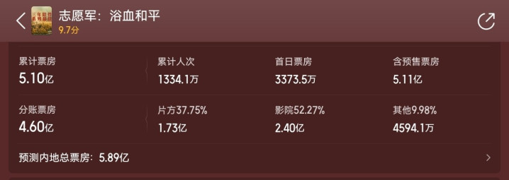 第一部,《志愿军:浴血和平》,票房5.1亿