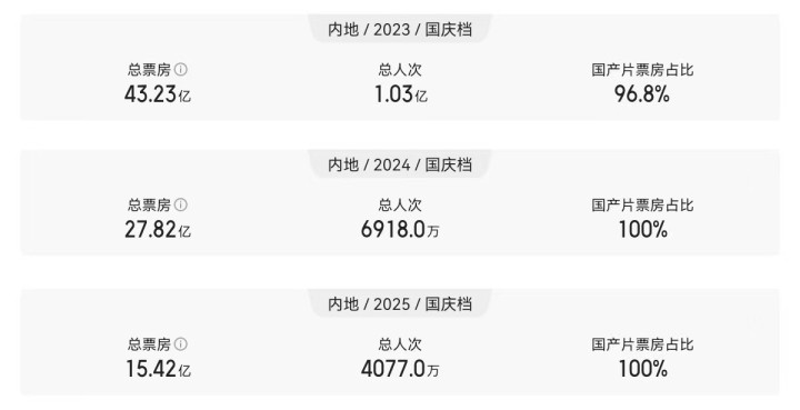 相当于国庆档的票房总成绩,还不如往年单部电影的票房高。