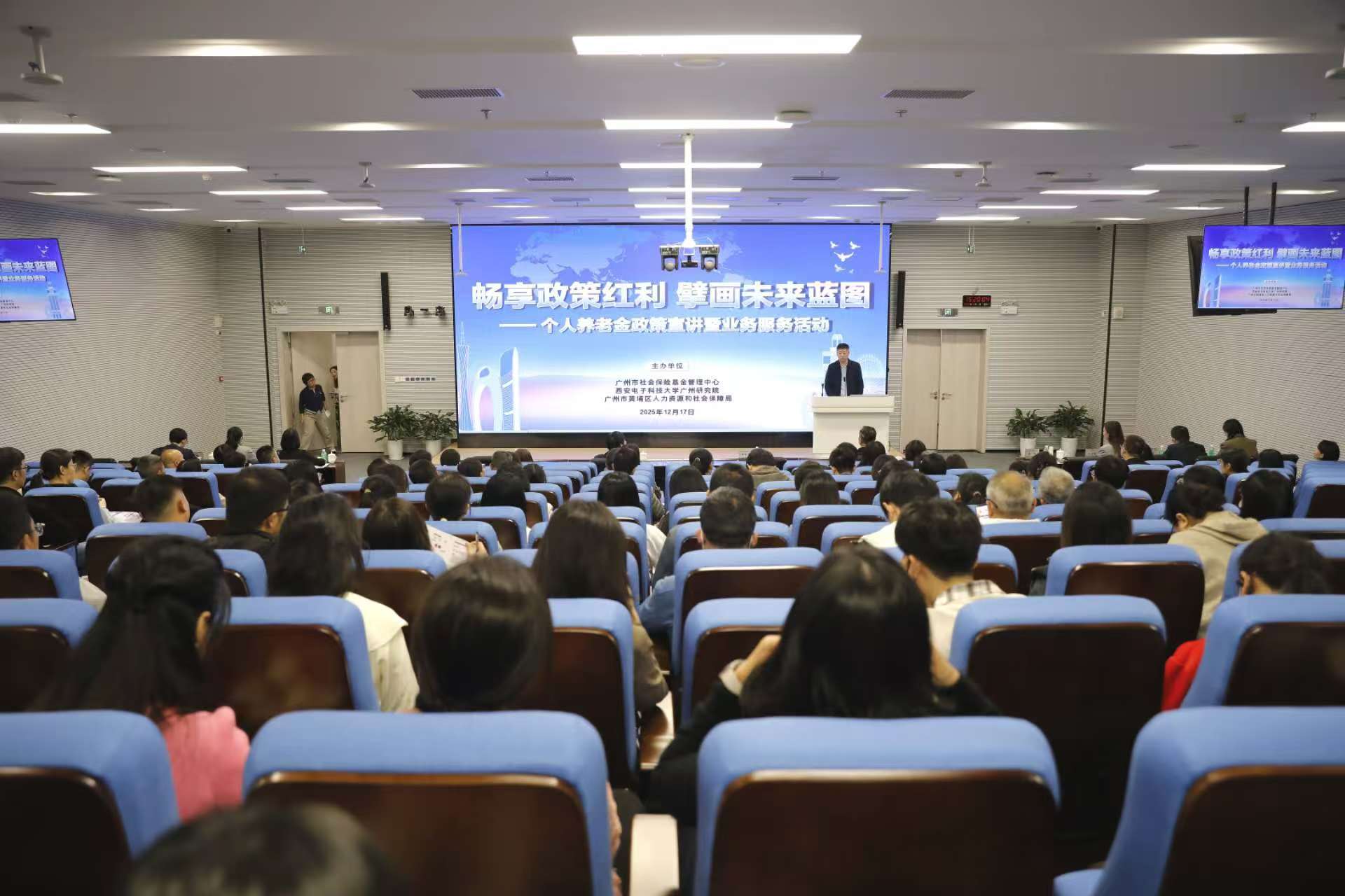 为贯彻落实党中央、国务院关于健全多层次、多支柱养老保险体系的重大决策部署,推动个人养老金制度落地见效,12月17日,广州市社会保险基金管理中心联合黄埔区社会保险基金管理中心,在西安电子科技大学广州研究院成功举办以“畅享政策红利 擘画未来蓝图”为主题的个人养老金政策专场宣讲活动。