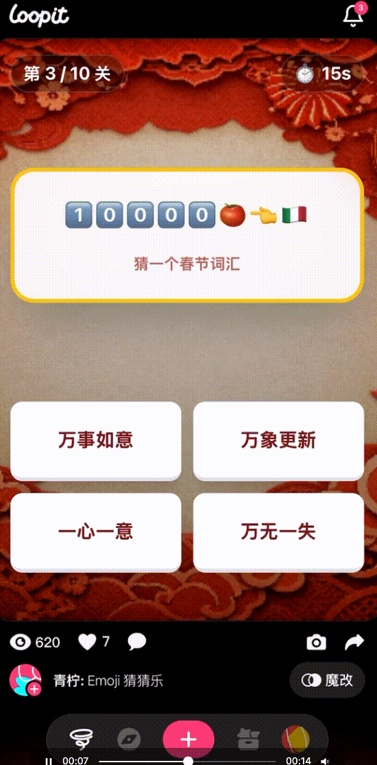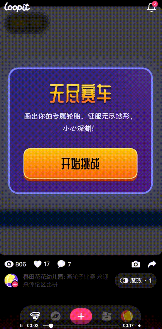 因为跟抖音、小红书类似,Loopit走的也是UGC的路子。用户只需要把自己的想法和创意告诉AI,系统就能自动生成多模态的交互内容,也可以在别人创意的基础上进行魔改。