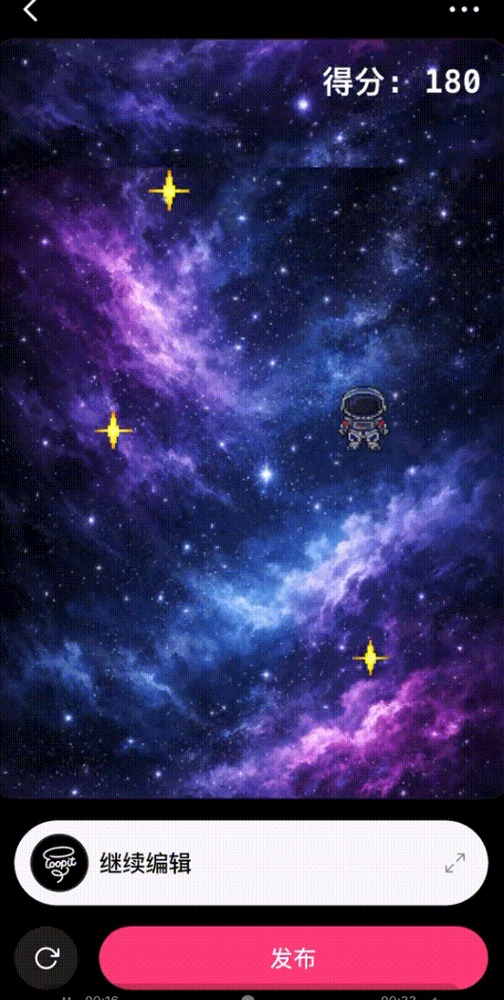 即使我的prompt里没提到具体的页面设计和音效啥的,AI也会根据《太空摘星》这个游戏名,生成相关的内容。